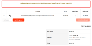 Când valoarea totală a coșului este sub 100 lei, utilizatorii vor vedea următorul mesaj pe pagina de coș:
