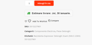 Un mesaj de livrare elegant, dinamic și animat va fi afișat pe pagina fiecărui produs disponibil în stoc, oferind utilizatorilor informații clare despre data estimată de livrare.