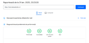 Înainte de a optimiza, trebuie să știi cât de bine funcționează site-ul tău. Poți testa viteza folosind: