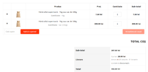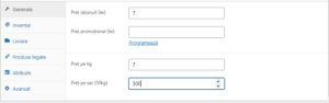 Această soluție este perfectă pentru magazinul online care comercializează produse vândute la kilogram sau în saci de 50 kg, cum ar fi produse agricole sau materiale de construcții. Vom adăuga câmpuri personalizate pentru prețul pe kilogram și pe sac în backend-ul WooCommerce, iar pe pagina de produs vom afișa aceste opțiuni pentru selecția cantității.