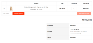 4. Actualizarea prețului în coș: Prețul este ajustat în funcție de selecția utilizatorului.