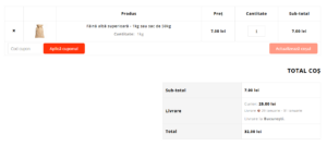 5. Afișarea selecției în coș: Informația despre selecție este afișată în coș și pe pagina de finalizare comandă.