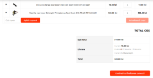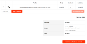- Dacă totalul coșului este mai mic de 500 lei, costul livrării este setat la 25 lei.